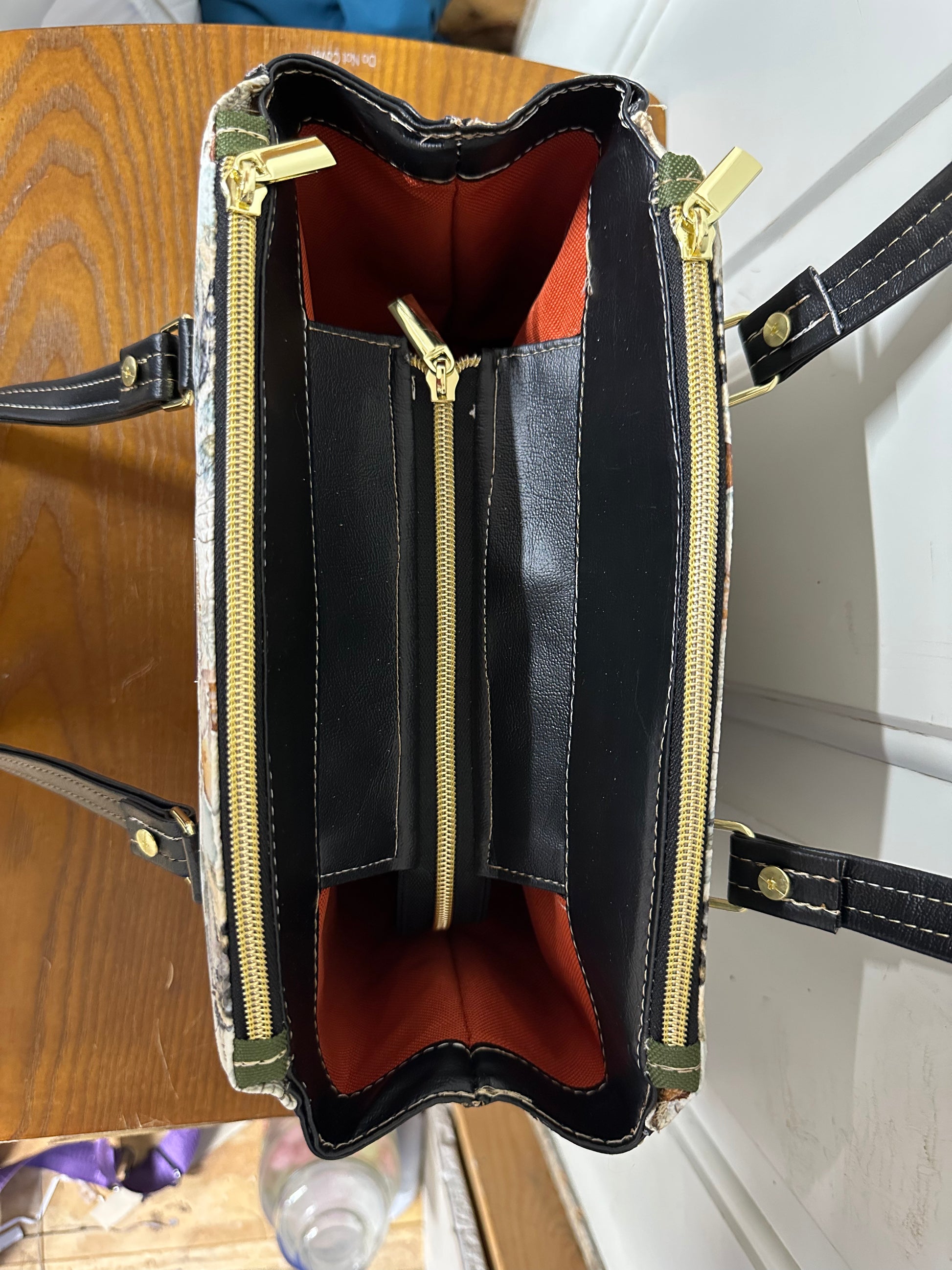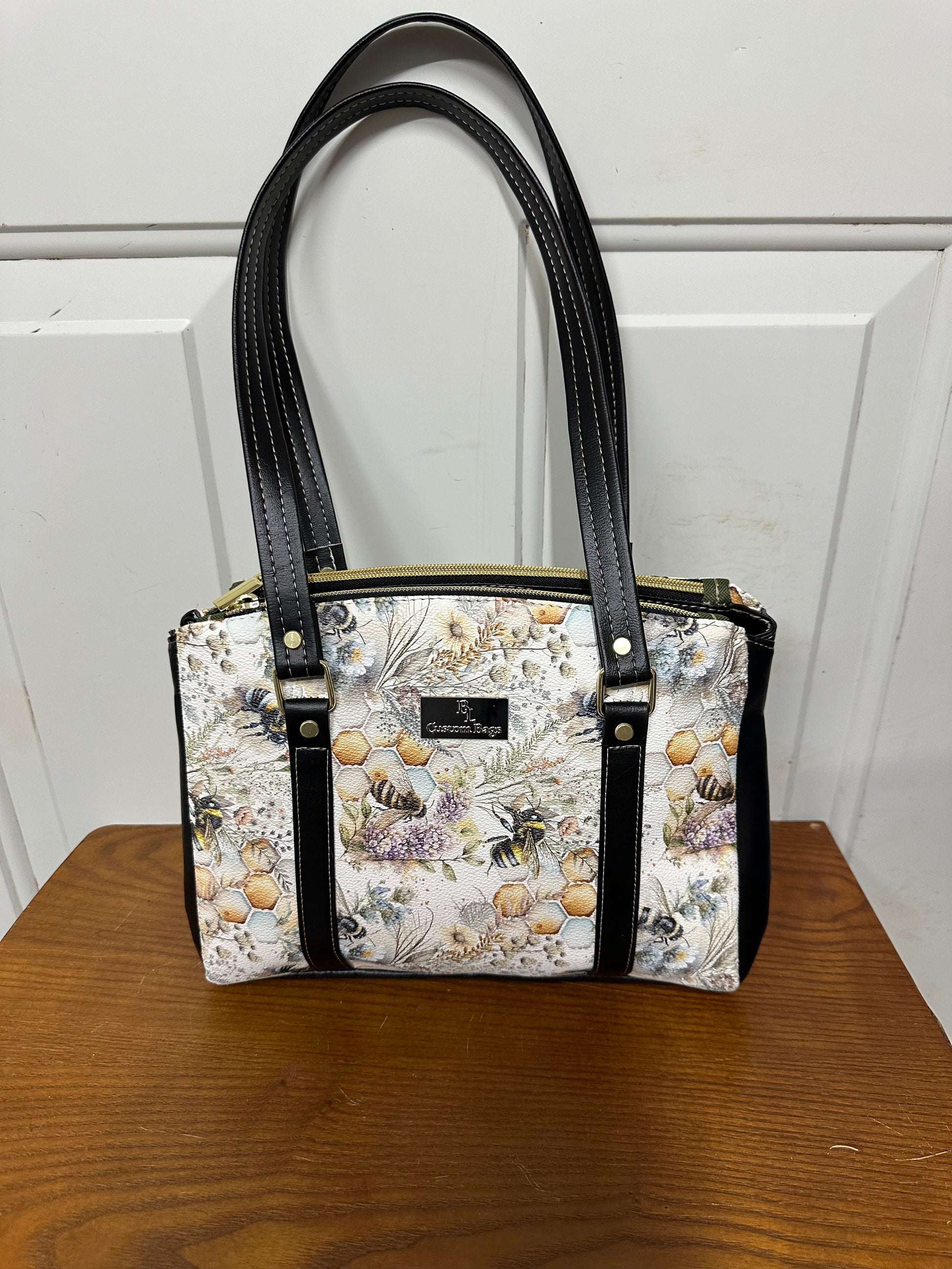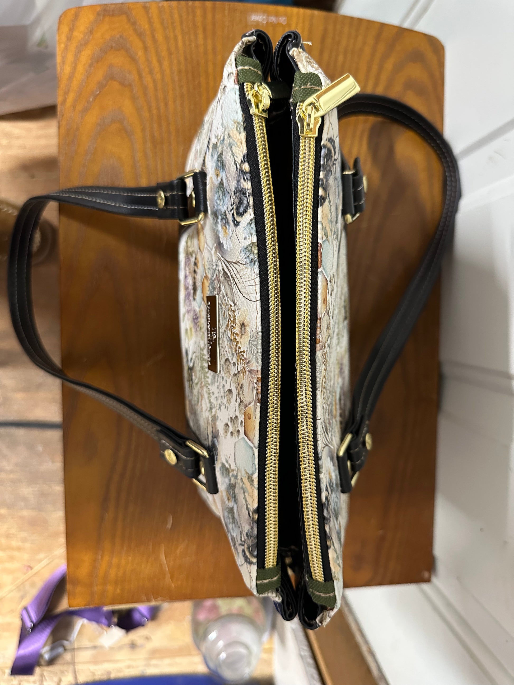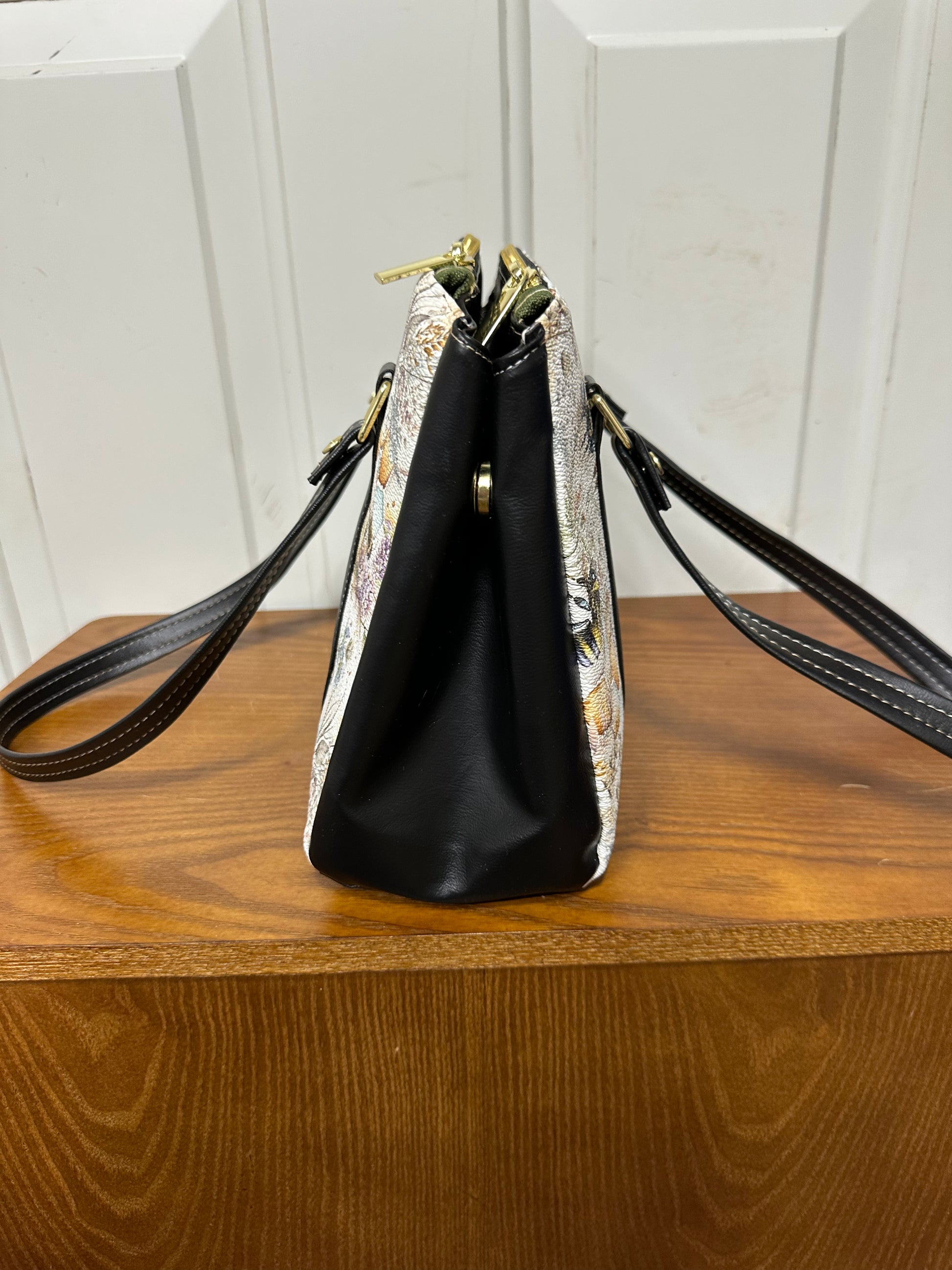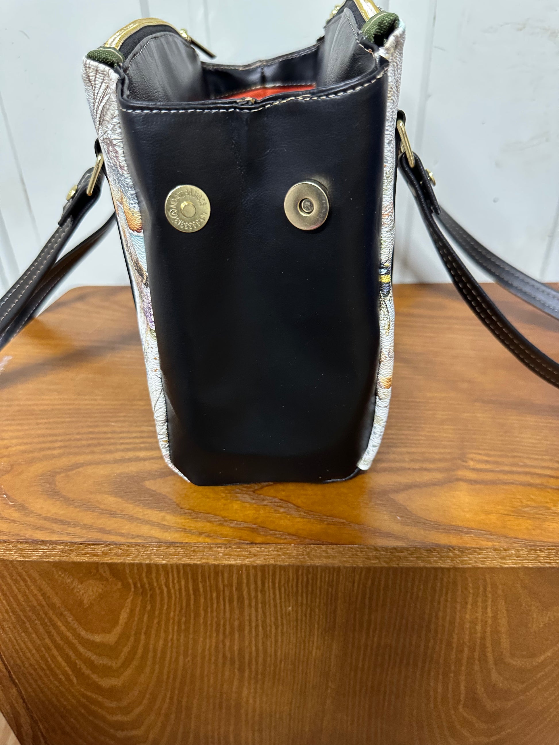 This cute handbag could be your next favorite bag. Measuring at 12”w 9” h 4.5D.