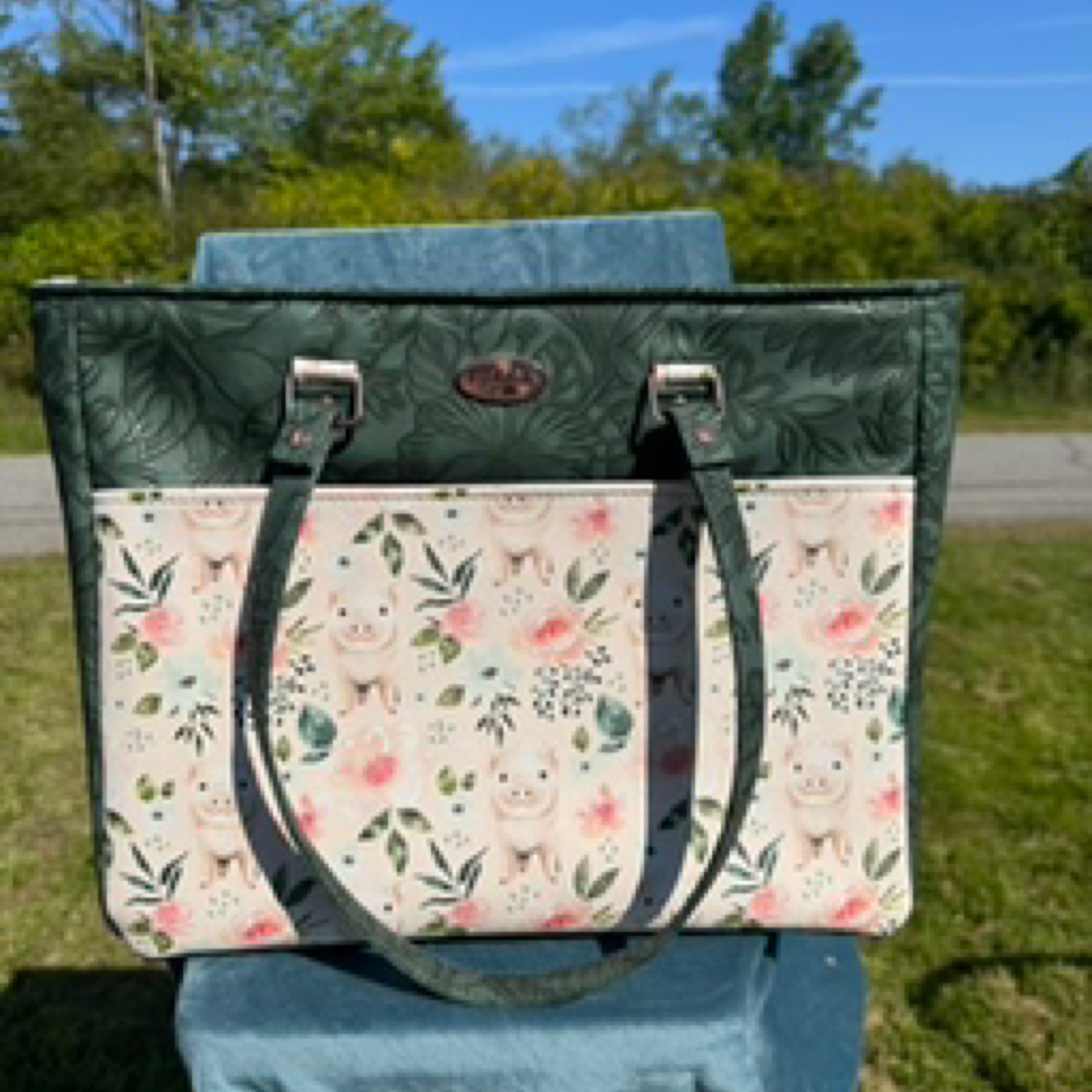 The Becca bag made at 120% the size of the original measuring at 16 x 11.5 x 5. Outside features a pocket on each side inside features a zipper pocket on one side and a slip pocket on the other with a recess zipper on top.